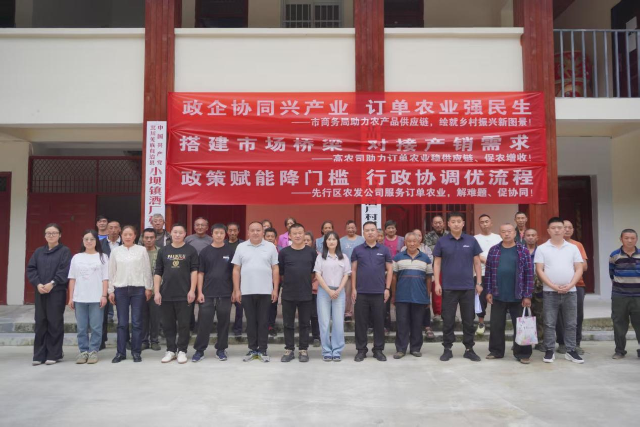 9月26日,在北川县人民政府的大力支持和市商务局、交发集团的指导下,高农司在小坝镇酒厂村隆重举行第二季订单农业启动仪式。本轮订单农业由高农司联合北川县小坝镇政府及下辖酒厂村等3个自然村村委、绵阳北川石椅羌寨先行区生态农业发展有限公司联合打造,采取政企协同、多方联动等方式,共同推动当地特色农业提质增效。