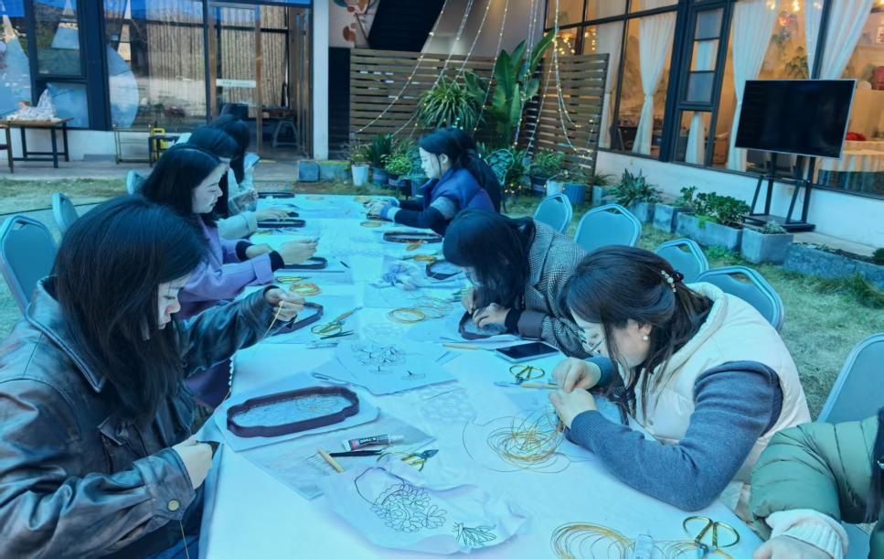 活动现场,手作老师首先对掐丝珐琅工艺进行了简要讲解,并细致演示了关键步骤。在老师的指导下,大家全神贯注地投入到创作中去,小心翼翼地掐丝、点蓝,将一根根细铜丝弯曲成精美的图案,再填入五彩斑斓的颜料,每一步都凝聚着专注与耐心。经过一番精心制作,一件件流光溢彩的成品惊艳亮相。这些独一无二的作品,不仅浸润着女职工们的匠心巧思,更承载着对美好生活的无限热爱。